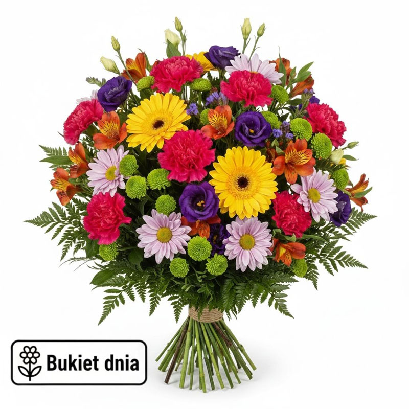 Bukiet Dnia przygotowywany jest indywidualnie z najświeższych kwiatów dostępnych danego dnia. Florystka samodzielnie dobiera kwiaty i kolorystykę. W bukietach wykorzystywane są kwiaty sezonowe i całoroczne, tworząc estetyczną i harmonijną kompozycję. To idealny wybór na każdą okazję. Zamów bukiet z dostawą na terenie Jastrzębia-Zdroju i spraw radość bliskiej osobie.