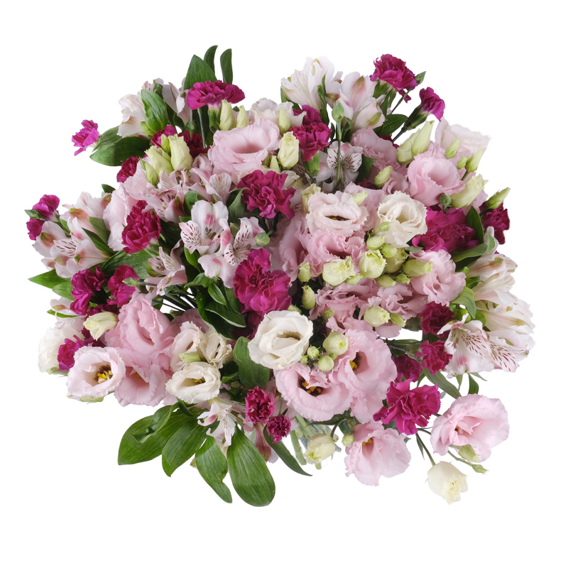 „Miłosny list” to wyjątkowy bukiet, w którym goździk, alstromeria i eustoma wyrażają emocje lepiej niż słowa – różowa kolorystyka z intensywnymi akcentami robi wrażenie.